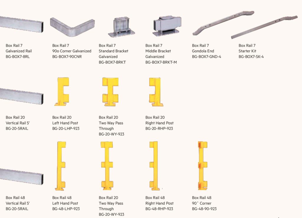 Box Rail 48, Box Rail 20 and Box Rail 7 provides extreme protection for your back room and vestibule. Our complete range of Box Rail products are made of all steel components that protect against the daily punishment from fork trucks, hand trucks, equipment movers.