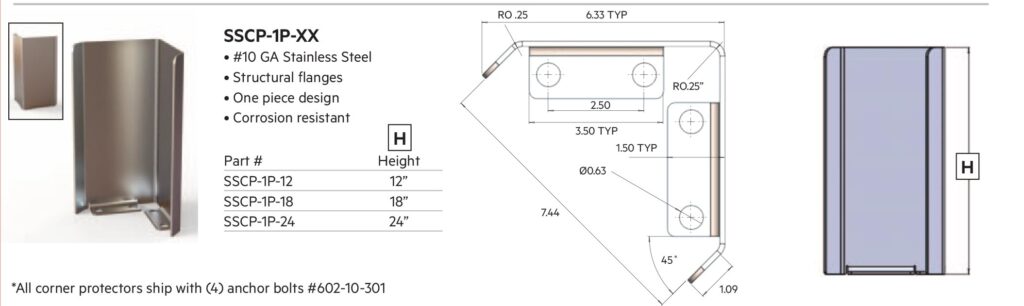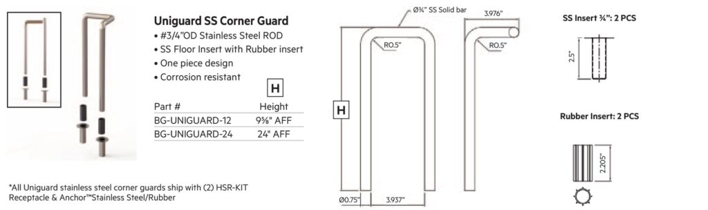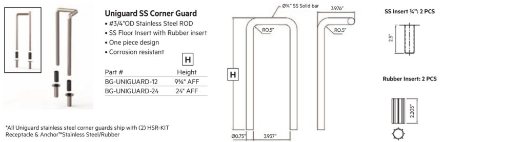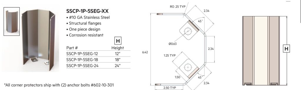 Boston manufactures a complete line of 10-gauge, brush-finished stainless steel and CRS corner guards that can withstand impact up to 4,000 lbs! For your highest-traffic areas, they’ll protect your corners from the daily assault of shopping carts, electric floor scrubbers, even pallet jacks.