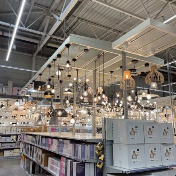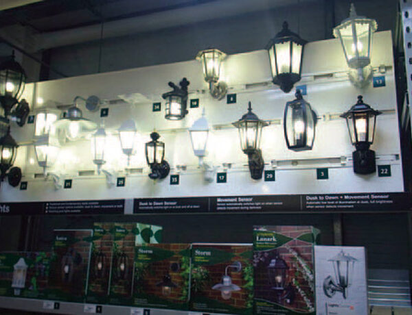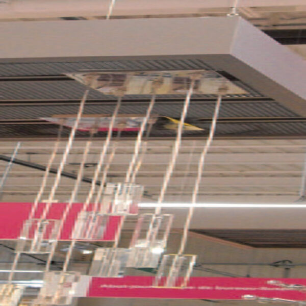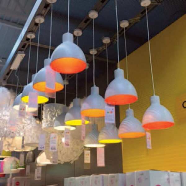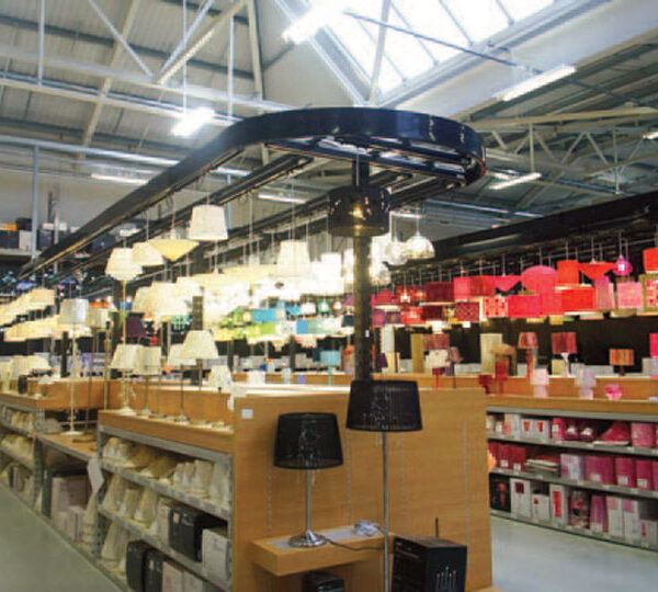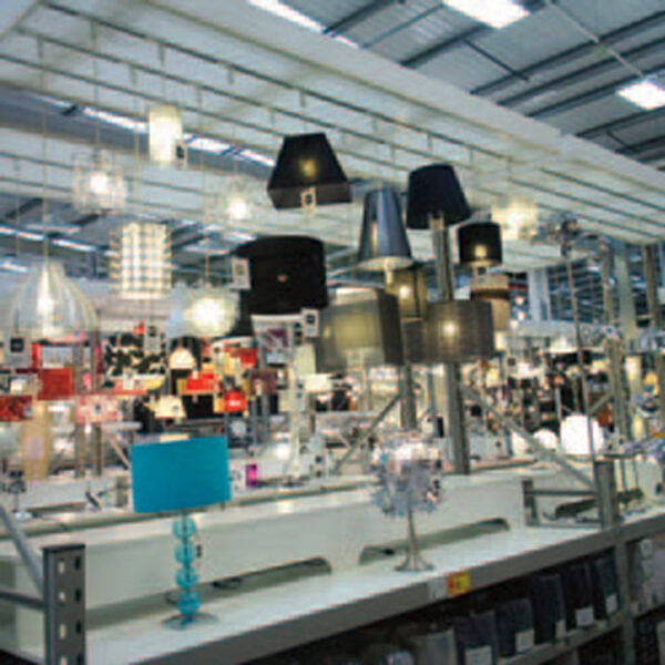 Boston Retail’s PowerTrack™ Pods are a versatile resource for attractively displaying ceiling light fixtures. They are constructed with PowerTrack™ and filler panels that fit easily overhead in warehouse racking. PowerTrack™ is the pre-fabricated, factory built core electrical component. PowerTrack’s consistent high quality standards allow for speedy installation for multi-display and store roll-outs. Combine PowerTrack™ with a large choice of filler panels, fixture hangers, color and texture options to create a unique display that complements your merchandising scheme.